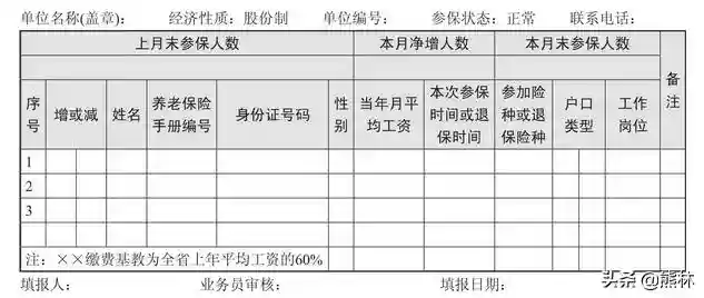 (2)本表应于增减发生当月25日前一式两份报社险办审核后,一份退还上报单位留存。