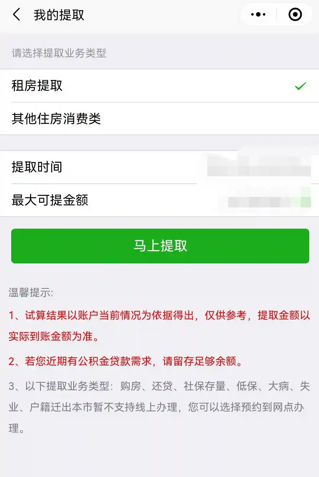 租房线上提取渠道